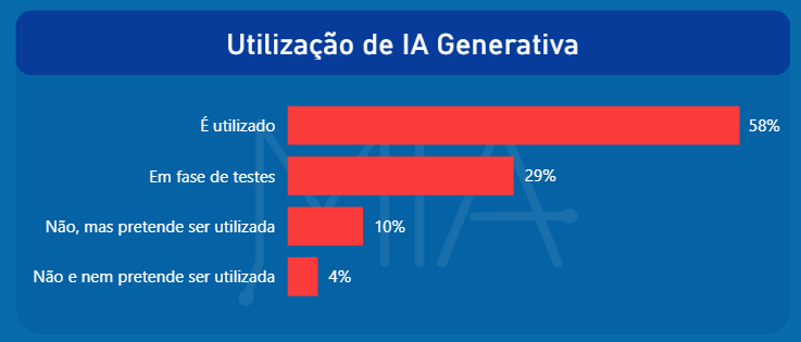 Por fim, o percentual de empresas que não utilizam nem pretendem utilizar a tecnologia é residual (4%), o que reforça a leitura de que a IA Generativa deixou de ser uma tendência distante e passou a integrar a agenda estratégica da maioria das organizações.