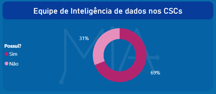 O gráfico indica que a maioria dos Centros de Serviços Compartilhados ainda não possui uma equipe dedicada de inteligência de dados. De acordo com os dados, 69% dos CSCs afirmam não contar com esse tipo de estrutura, enquanto apenas 31% já possuem uma equipe formalmente estabelecida.