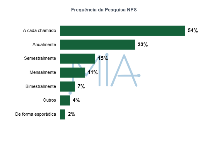 Conforme pode-se observar no gráfico acima os CSCs adotam frequências diferentes para aplicação do NPS, com uma cadência predominante e outras opções aparecendo com menor incidência. A distribuição sugere níveis distintos de maturidade no acompanhamento da experiência do cliente: quanto mais recorrente a medição, maior tende a ser a capacidade de ajuste rápido e gestão ativa de percepção; em ciclos mais longos, o NPS costuma funcionar como um indicador mais consolidado, com menor capacidade de correção no curto prazo.