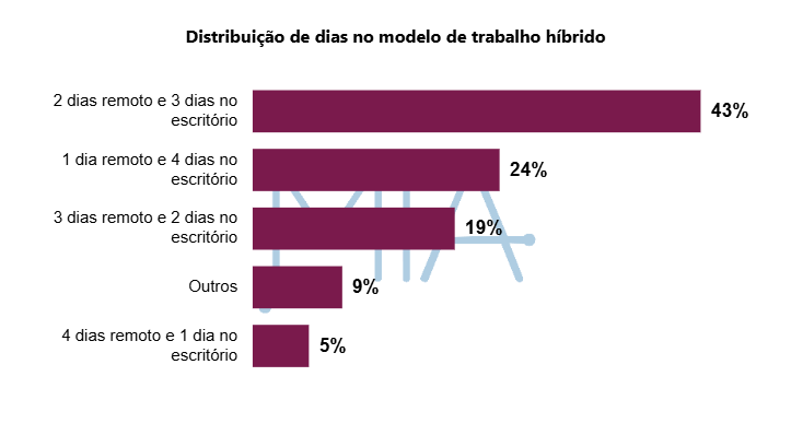 Entre as empresas que adotam o modelo híbrido, existe uma tendência clara em relação à distribuição dos dias presenciais.